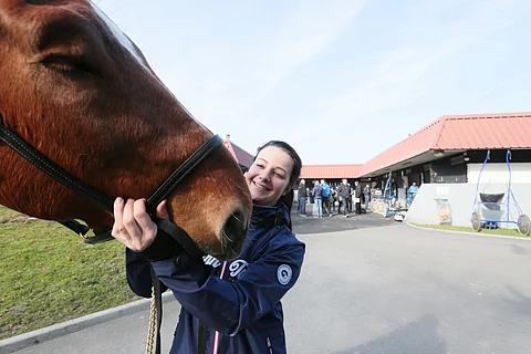 Hippoksen tiedottaja Ilkka Nisula jututti Henna Halmetta, 22, hetki ennen Salamakypärät-lähdön alkamista Vermon T65-kierroksella. Tavallinen tilanne kääntyi riemuksi, kun Nisula onnistui yllättämään ohjastajan ainutalaatuisella kutsulla.