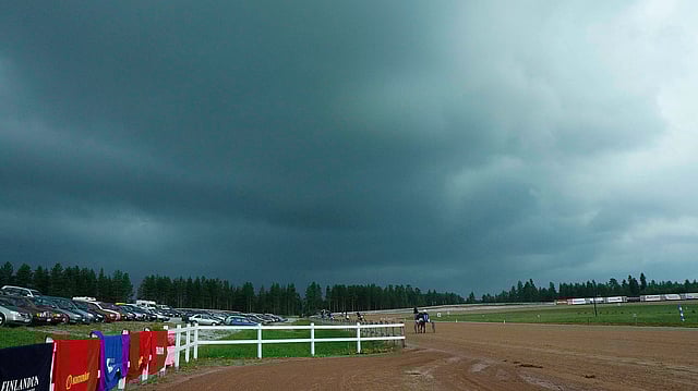 Ukkospilvi voi oikein vettä laskiessaan keskeyttää hetkeksi ravikilpailut. Suomen Hippoksen ravipäivien uusjako lopettaa ravitoiminnan Kajaanista. Jos ei ensi vuonna, niin tällä menolla muutaman vuoden kuluessa.