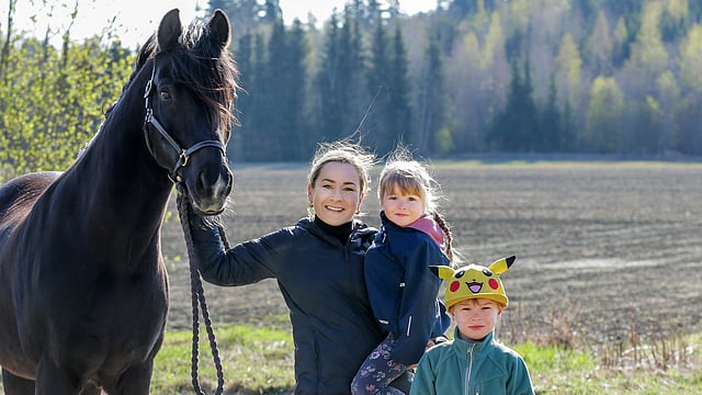 Pullantuoksuista kotiäitiä Korpikoskesta ei saa. Eikä ihan tavallista, hän huomauttaa. ”Raviurheilussa on paljon äitejä, jotka ovat vielä tekevämpiä kuin minä. Hevosnainen on oma rotunsa, mä olen kuitenkin ehkä siitä pehmoversio.”