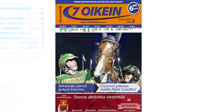 Keskiviikko on 7 oikein -päivä. Uusin lehti on ilmestynyt tilaajille ja lehtipisteisiin. Ota se avuksesi totopottien metsästykseen. 56-sivuinen lehti kattaa ravien käsiohjelmat, tallikommentit ja totovihjeet kaikkiin kotimaan kisoihin keskiviikosta tiistaihin.