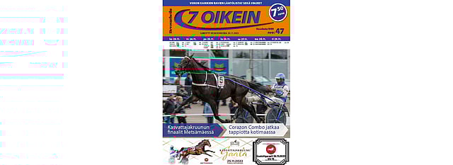 68-sivuisessa 7 oikein -lehdessä on kotimaan ravien käsiohjelmasivut keskiviikosta tiistaihin. Tänään ajetaan Vermossa Toto65-kierros, ja torstaina jatkuu Lahden Jokimaan tiivis syyskausi. Perjantaina ravataan Kuopiossa ja Forssassa.