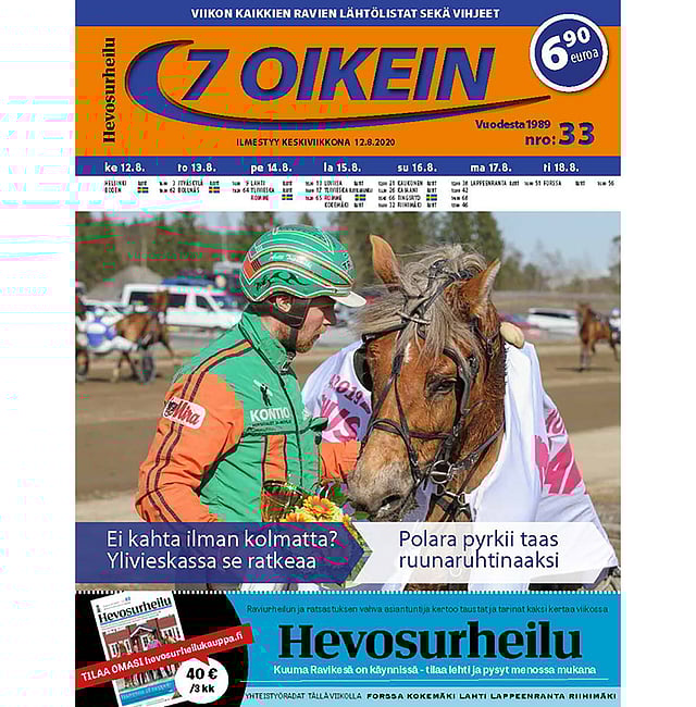 Forssan käsiohjelmasivut päättävät tänään ilmestyneen 7 oikein -lehden kotimaan raviosuuden. Lehdessä on lisäksi aina parhaat palat Ruotsin raveista, starttaavien hevosten aakkosellinen listaus, menneen viikon nostot Ravikierros-osiossa, kurkistus historiaan Nostalgia-sivulla sekä tietovisa 7 kysymystä.