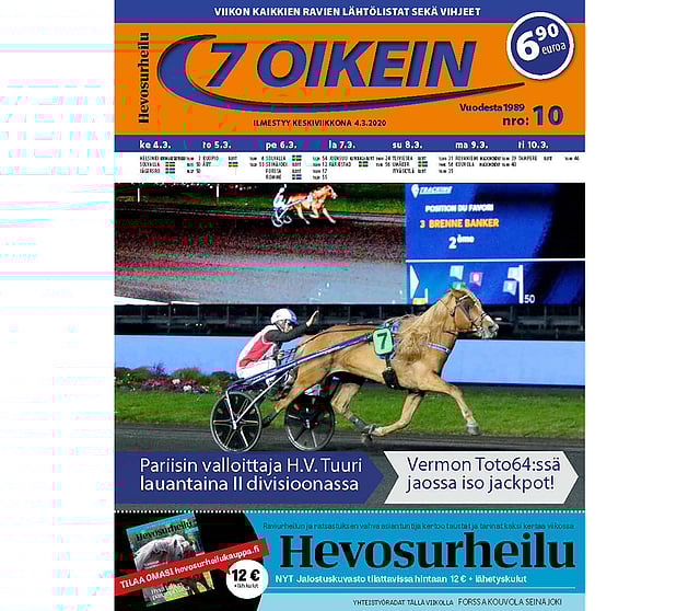 Tänään ilmestyneen 7 oikein -lehden listat lähtevät liikkeelle Vermosta ja päättyvät jälleen tiistaita isännöivän Teivon raveihin. Kaikista kotimaan totoraveista on tarjolla kattavat paketit vihjeiden ja tallikommenttien kera.