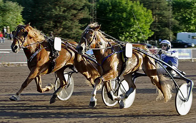 Carmelaa ohjastanut Esa Holopainen ihasteli molempien hevosten juoksua.