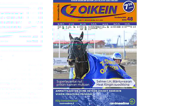 68-sivuisessa lehdessä on kotimaan ravien käsiohjelmasivut keskiviikosta tiistaihin. Vermon Toto65-ravit aloittavat tuttuun tapaan 7 oikein -raviviikon, ja torstaina jatketaan Lahden Jokimaalla. Kouvola ajaa Toto5-ravit perjantaina, ja Superlauantaita isännöivät Vermo sekä Rovaniemen Mäntyvaara.