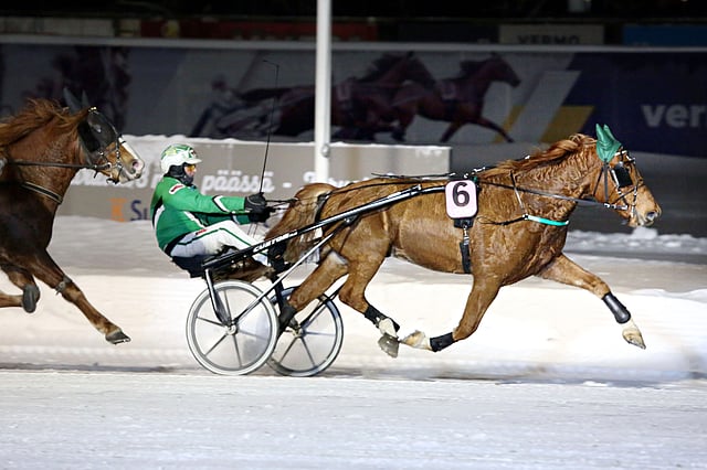 ”Tällä on ollut vähän koko ajan pieniä ongelmia, mutta oli hevonen siihen nähden asiallinen tauolta. Luulen sen vain petraavan startti alla ja mielestäni pärjäämisen pitäisi olla ihan mahdollista. Nyt vielä varustukseen lisätään vetolaput”, Suominen kertoo.