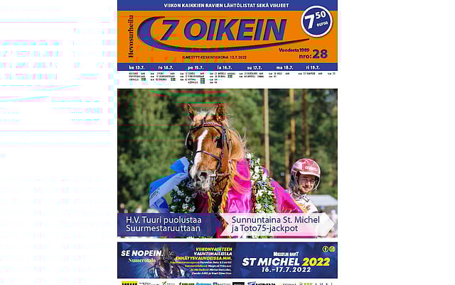 Katso kaikki käsiohjelmatiedot, vihjeet ja tallikommentit tällä viikolla 76-sivuisesta 7 oikein -lehdestä, jossa myös lähtölistat Ruotsin päivän pääpelin kohdelähtöihin keskiviikosta lauantaihin. Sunnuntaina Ruotsin GS75 pelataan Jägersron laukkakisoihin.