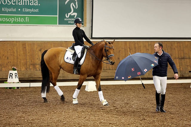 Videolla Stella Hagelstamin tulevan sunnuntain hallimestaruuskisojen mielenkiintoisin osallistuja New Hill Julitrea tekee tuttavuutta sateenvarjon kanssa. Ypäjähallissa tuskin sunnuntaina sateenvarjoja ongelmaksi asti on, mutta se on hyvää harjoitusta ensi kesää ja tulevaisuutta silmällä pitäen.