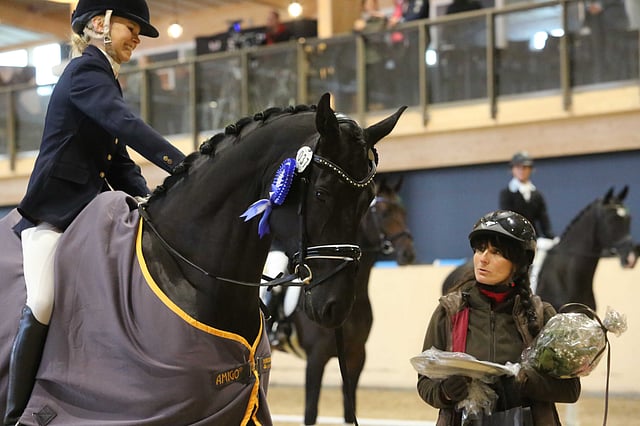 Iso, musta ja elegantti FWB-tamma Riverbank Fürst Ballerina vei voiton Ainossa Sara Lehtilän ratsastamana. Tulokseen 7,81 sisältyy yhdeksikkö rakennepisteiden rivissä.
