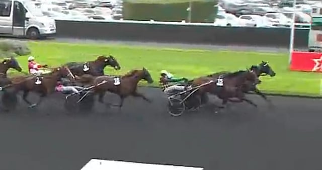 Björn Goop taitaa ranskalaisen volttilähetyksen. Hän ajoi San Moteurin heti kärkijoukkoihin, ensin johtavan rinnalle ja sitten keulaan. Benoit Robinin valmentama Hussard du Landret paineli sen jälkeen kärkeen, ja San Moteur seurasi sen takana.