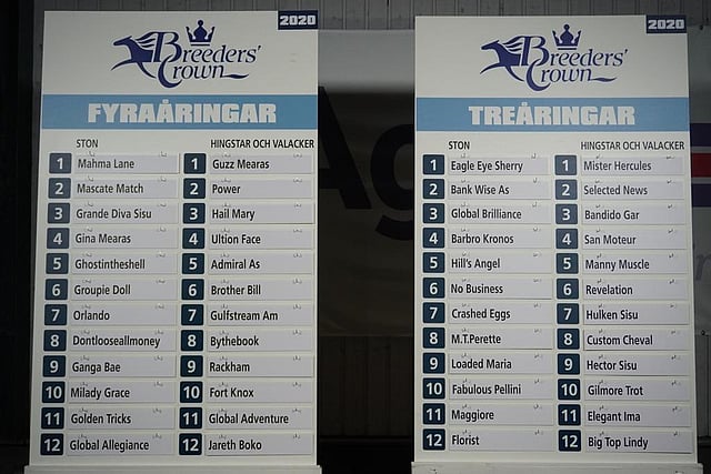 Per Nordström sai valita 4-vuotiaiden tammojen karsintavoittajista viimeisenä eli kolmantena radan. Hän otti Grande Diva Sisulle kolmospaikan. Mertsi Grönstrandin Orlando lähtee seiskaradalta finaalissa.