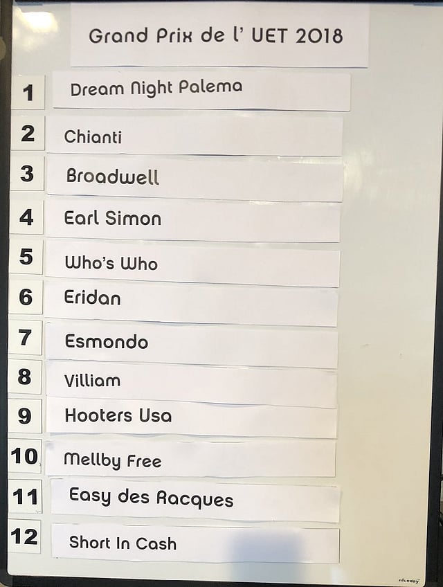 UET Grand Prix -finaali juostaan Vincennesissä perjantaina 12. lokakuuta. Voittaja saa 200 000 euroa. Lähtöradat valittiin Solvallassa.