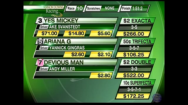 Åke Svanstedt onnistui voittamaan 36-kertoimisella yllättäjällä Yes Mickeyllä suursuosikiksi pelatun Jimmy Takterin Ariana G:n perjantain suurkilpailussa Vernon Downsissa New Yorkin osavaltion pohjoisosassa.