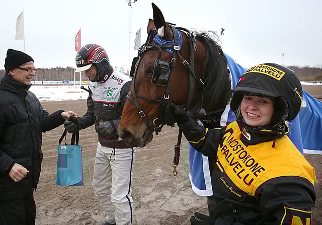 "Ei ihan hyvä ole, pienen huollon paikka. Ravi oli tököttämistä. Tamma oli viimekertaisiin esityksiin verrattuna vaisumpi", Markku Nieminen ei ollut voitosta huolimatta tyytyväinen suojattiinsa.