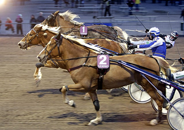 Maalisuoralla Esa Holopaisen kannustama Carmela alkoi kuitenkin saavuttaa ja Mika Forssin ajokki Salasana hamusi myös voittotaistoon. Maalilinjaa läheni tasapäinen kolmen hevosen rintama, josta keskimmäinen, Seppo Suurosen valmentama Carmela, kurotti linjalle parhaiten.