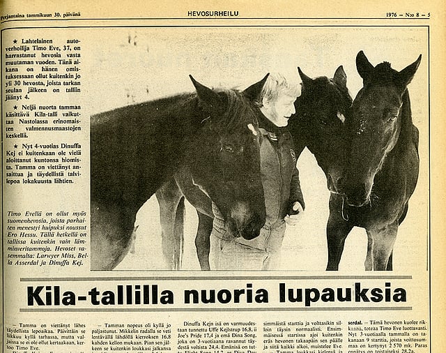 Tämän huomioi myös Hevosurheilu tekemällä lähikuvajutun Timo Even Kila-tallista tammikuussa 1976. Kila-talli oli saanut nimensä Lankilan kylästä läheltä Lahtea.