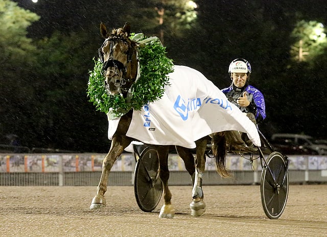 Kuten Ruunakunkkarien päätösmatkalla, ruotsalaista Don Vikingiä ajaa Hannu Torvinen. Epäonnisen Ylivieskan reissun jälkeen se on ehtinyt juoksemaan kärryt perässä Ruotsin mestaruushopeaa sekä satula selässä montén Ruotsin mestaruuden.