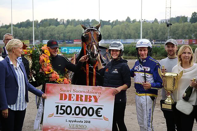 Valmentaja Timo Nurmokselle voitto Suomen derbyssä oli uran viides. Ohjastaja Jorma Kontiolle derbyvoitto kotimaan kamaralla oli jo yhdeksäs.