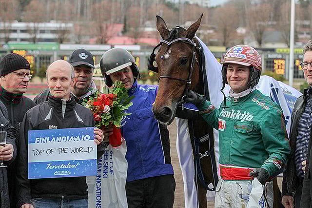 Vermon vaikeaksi äitynyt Toto75-kierros päättyi hienotasoiseen Helsinki-ajoon. Sen 10 000 euron arvoiseen voittoon kiri kilpailuennätyksellä 11,2/1609a johtaneen Edward Alen takana ravannut Top Of The World, jota valmentaa Juuso Holttinen. Hevonen sai voittajaseremonioissa kutsun Finlandia-ajoon.