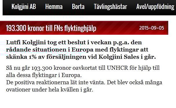 Lutfi Kolgjini päätti jo viikolla lahjoittaa huutokaupan kokonaismyyntisummasta 1 prosentin YK:n pakolaisavulle. Lahjoitusummaksi tuli muhkea 193 300 Ruotsin kruunua eli noin 20 500 euroa.