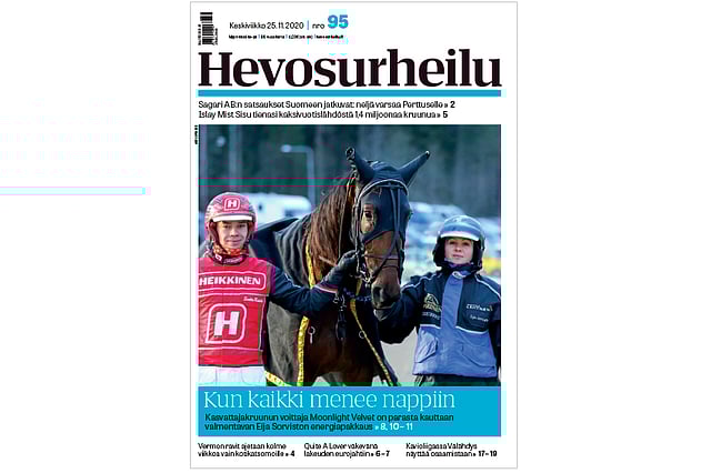 Lehti pureutuu yhtäältä viime lauantain Killerin Kasvattajakruunujen tapahtumiin ja toisaalta nelivuotiaiden tammojen finaalin voittajan Moonlight Velvetin valmentajan Eija Sorviston tarinaan. Sorvisto kun kouluttautui aivan muulle alalle, mutta löysi itsensä valmentamasta hevosia.