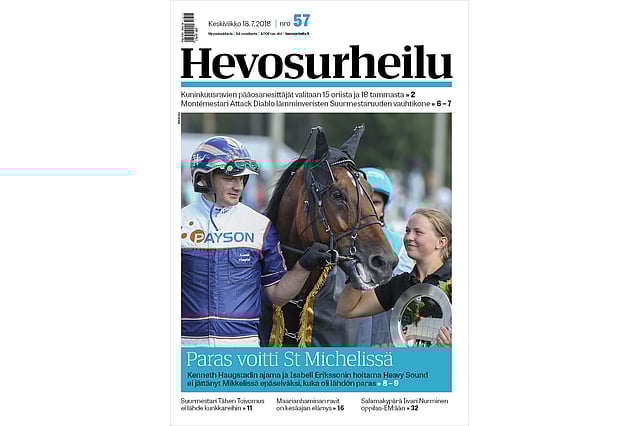 Esittelyssä myös oppilas-EM:iin suuntaava pilvenmäkeläisohjastaja Iivari Nurminen. Äänessä-palstalla on Mikkelistä bongattu hevosenhoitaja Marja Ahonen, joka tuo Ruotsista Mattias Djuselta kaksi Juha Vidgrénin hevosta Einari Vidgrénin muistoajoon.