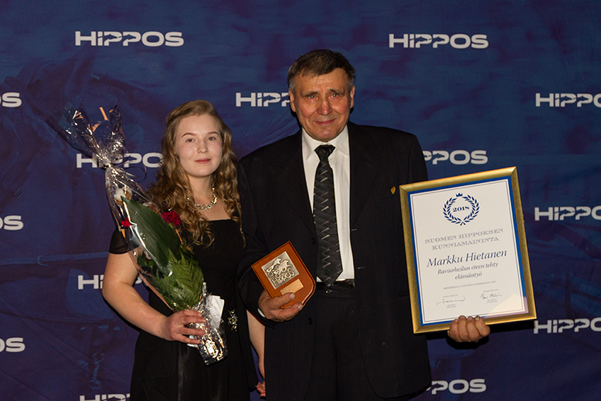 Seitsemällä vuosikymmenellä kilpaa ajanut Markku ”Faari” Hietanen sai lauantaina Seinäjoella järjestetyssä Ravigaalassa Suomen Hippoksen myöntämän elämäntyöpalkinnon.
