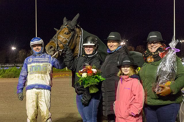 Veli-Matti Kangasluoman valmentama ja ohjastama Mysteerio voitti neljännen Toto76-kohteen. Kuva: Ada Pykäläniemi