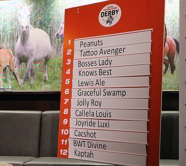 Viime syksynä lähdön voitti Hachiko De Veluwe. Tänä vuonna Timo Nurmoksella ei ole Suomen derbyfinaalissa edustajaa, kun kisan etukäteissuosikeihin kuulunut Marrakesh pilasi karsinnoissa laukkaan.