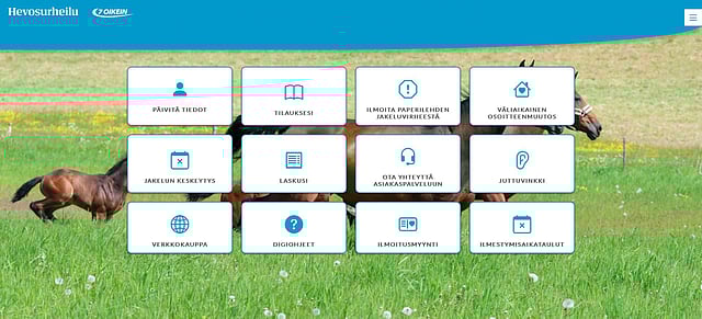 Avaa sovellus ja valitse aloitussivuksesi tilauksesi mukainen sisältö, Hevosurheilu, Ratsastus tai 7 oikein. Aloitussivu määrittää etusivusi, kun avaat sovelluksen. Voit vaihtaa aloitussivun koska vain sovelluksessa. Jos sinulla on voimassa kaikki digitilaukset (Hevosurheilu, Ratsastus ja 7 oikein), pääset lukemaan niitä sovelluksessa riippumatta siitä, minkä aloitussivun valitsit.