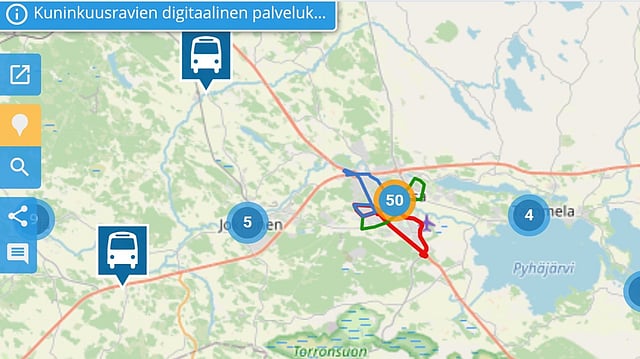 Digitaalinen palvelukartta löytyy Citynomadi-sovelluksen lisäksi myös Kuninkuusravien nettisivuilta.
