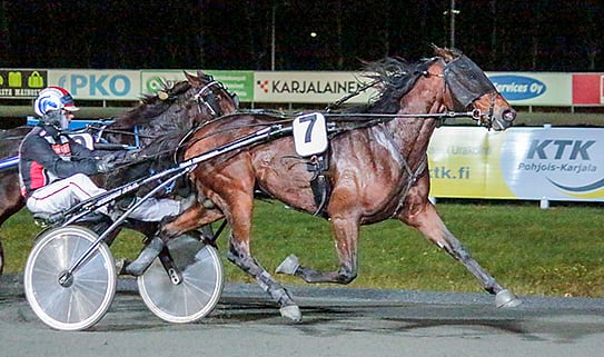 Toto65-1: Pam Hallover avasi rivin Joensuussa suurena suosikkina. Takarivistä lyhyen matkan ryhmään lähtenyt Pam Hallover pääsi kolmanteen pariin ulos, josta leiskautti takasuoran spurtilla johtaneen Grouse Manin rinnalle ja siitä maalisuoralla omille teilleen.