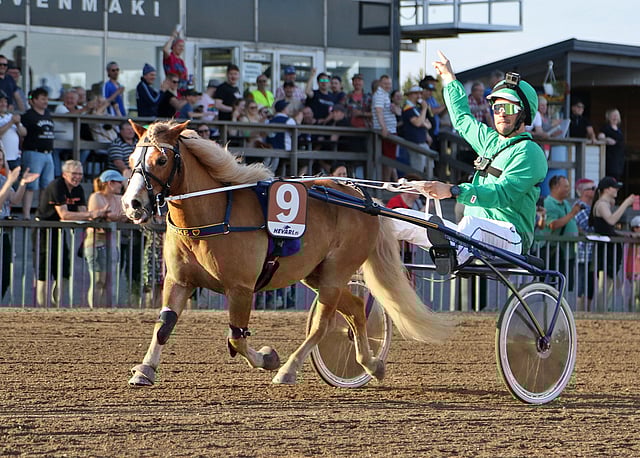 ”Heti kun vähän antoi ponille ohjeistusta, se lähti laukalle ja sitten kun podium-sijoista yritettiin tosissaan kamppailla, piti ihan kaksinkäsin ottaa kiinni”, mies jutteli lähdön jälkeen.