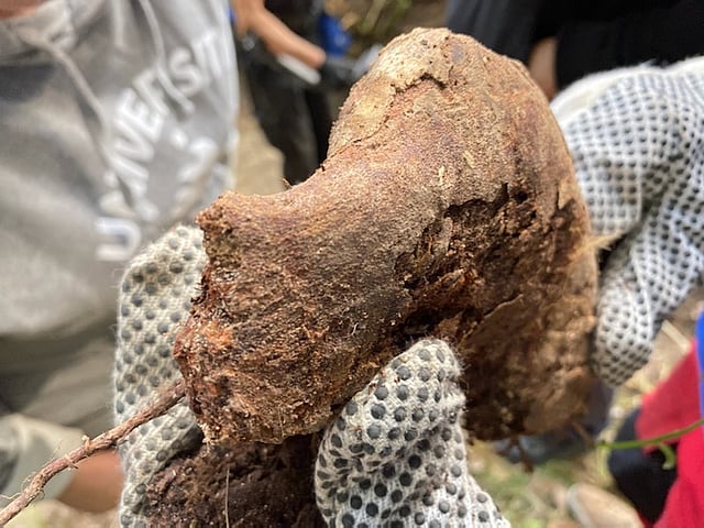 ”Luuainesta on löytynyt, mutta äärimmäisen huonokuntoista. Se on jostakin isosta eläimestä ja epämääräisiä paloja, joita tulee sieltä täältä. Punertavaa, hyvin maatunutta juurten läpäisemää luuainesta, jossa on muotoja, jotka selvästi minun mielestäni on ison eläimen alaleuasta. Ne herättivät kiinnostuksen ja intoiltiin jo, mutta halutaan lisää vahvistusta vielä. Ollaan parhaillaan laajentamassa kaivettavaa aluetta”, Mannermaa toteaa.