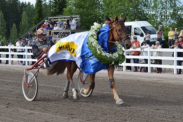 "Yllätyin, että hevonen lähti tosi hyvin liikkeelle. Toivoin, että se pääsee keulaan ja vedettiin siitä kaasu pohjassa. Uskoin, että se kestää maaliin saakka", Tähen Toivomuksen rattailla istunut Henri Bollström iloitsi voittoseremonioissa.