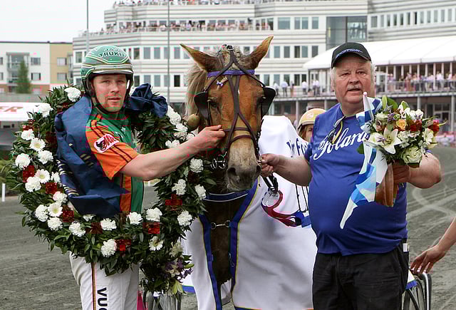 Kontrasti kymmenvuotiaan ruunan käyttäytymiseen kilpailutilanteessa ja etenkin voittajaseremonioissa on siten melkoinen. Tarmo Tiainen, 64, tuntee molemmat puolet, sillä hän on huolehtinut Polaran päivittäisestä hyvinvoinnista siitä lähtien, kun ruuna vaihtoi omistajaa reilut viisi vuotta sitten.