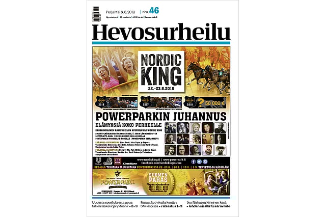 Yhteensä Hevosurheilua on perjantaina tarjolla 64 sivua, sillä välistä löytyy myös Kesäravit-liite.