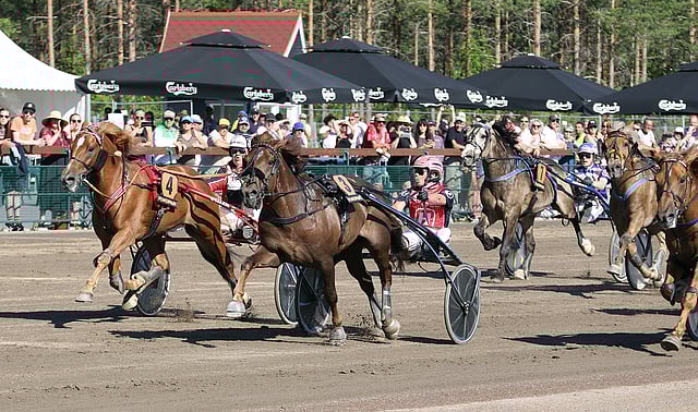 Powerparkin Juhannusmaili päättyi jännittävien vaiheiden jälkeen Kimmo Taipaleen ja 13-vuotias ori Välkyn Tuiskun voittoon.
