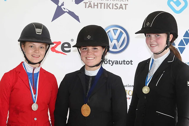 Junioreiden Suomen mestarit ovat Jenny Aarnio-Wihuri, Janina Kvarnström ja Minttu-Maija Koivusalo. Kuva: Leena Alérini