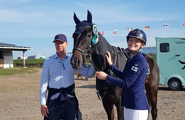 Veera Mannisen valmentaja ja hevosenomistaja Petri Tolmunen on onnessaan ratsukon menestyksestä Puolan Baborowkon neljässä tähdessä viikonloppuna.