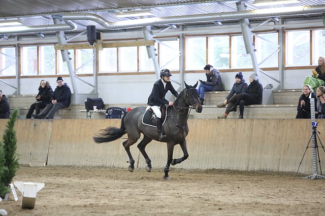 - Mikaela Soratie, nykyään Englannissa. Hän meni viikonloppuna kaksi vaikeaa luokkaa, inter II:n ja GP:n ja ne menivät sekä hyvin että huonosti. 67 ,6 % on hyvä, mutta jos hevonen lopettaa hengittämisen radalla, se on huono. Niinkin voi käydä, kun alkaa jännittää, Soratie totesi Dacorista grand prix'ssä.
