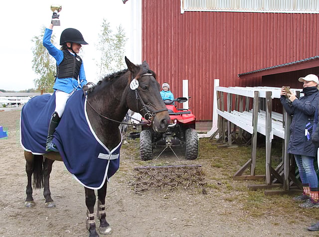 Jone voitti kesällä lapsiratsastajien SM-kultaa Eolitalla, jonka valinnan äiti teki tarkasti. Mutta ei koeratsastanut, niin kuin ei Jonen toista ratsua Claireakaan. Onneksi, koska siinä tapauksessa niitä ei olisi ostettu, hän hymyilee.