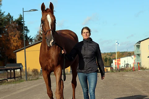 Maiju Mallat ja E-Beliss ratsastuskeskus Ainon pihalla lokakuussa.Kuva: Tero-Mikko Talaslahti
