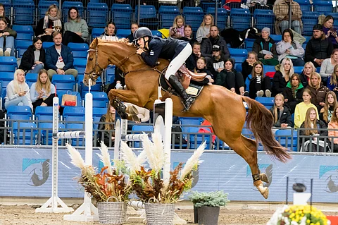 Jone Illin ja Celtas Quillianin ensimmäinen kansainvälinen kilpailu tuotti 130-luokan voiton Tallinna Horse Showssa.Kuva: Mari Ann Selge