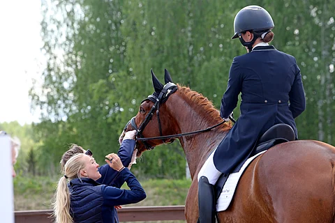 Valmentaja Stella Hagelstamin tulo tiimiin muutti kaiken. Kuvassa Kuokka ja FWB-ruuna Fillyhill's My Special (Blue Hors Don Olymbrio - Partout), jolla Kuokka starttaa GP:tä syyskuussa Vihdissä. Kuva: Leena Alerini