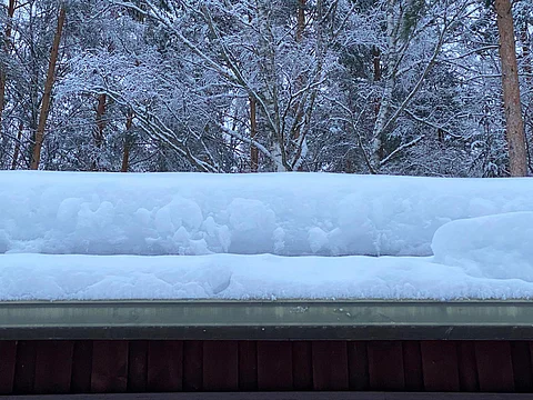 "180 kiloa on normaalirakennusten lumenkesto, ja tuon jälkeen lunta on tullut varmaan 30 senttimetriä, ja nyt se on vielä märkää. Ollaan oikeasti painorajoilla."