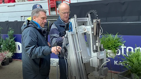 Lars Roepstorff ja Oliver Hoberg varmistavat mekaanisen kavion avulla, että radan pinta on kunnossa HIHS:ssä.Kuva: Tero-Mikko Talaslahti