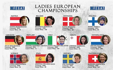 Naisamatööriohjastajien EM-kisan osallistujat.Kuva: Fegat