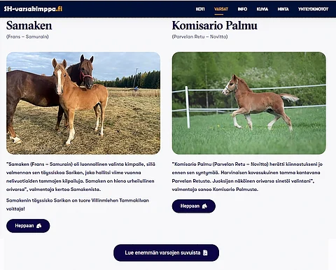 Silja Mäki-Tulokas on havainnut, että nimenomaan suomenhevosvarsakimppoja on alettu mainostaa viimeisen vuoden aikana. ”Niitä on ollut tosi vähän suhteessa lämpöisiin, mutta nyt on tapahtunut jotain.”