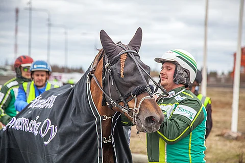 "Lisäksi se on ollut tosi ongelmallinen etupolvistaan. Nyt viime aikoina se on mennyt paljon eteenpäin, ja sen pitäisi tänään olla ihan asiallisessa mallissa. Neljän tai viiden sakkiin odottelen sen nousevan, mutta ei näiden aloittelevien suomenhevosten kanssa mitään ihan hirveitä vannomisia pitäisi tehdä."